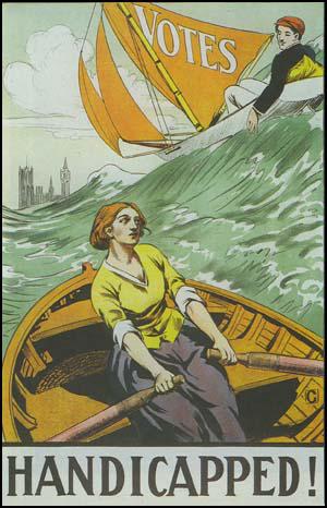 Philippa Strachey explained in a letter to Millicent Garrett Fawcett about the importance of Lowndes to the NUWSS. "On the Committee she was most helpful about everything and was delightful to work with because she was entirely free from any sort of nonsense; she only cared about the success of the procession as a whole and was perfectly willing to subordinate her decorations and give up all her cherished ideas when difficulties cropped up. She really did an immense amount of work for us and I shudder to think of what has happened to her own trade meantime." (4) Emily Ford was appointed as vice-chairman of the Artists' Suffrage League. (5) A long-term supporter of women's suffrage Ford joined the Manchester Society for Women's Suffrage in 1886. Three years later she signed the Women Householder's Declaration in favour of women's suffrage, and in 1897 was one of seventy-six painters listed as supporting the National Union of Women's Suffrage Societies. During this period she painted the portrait of Josephine Butler, that is now in the Leeds Art Gallery. (6) Ford was also the vice-president of the Leeds Suffrage Society and designed its membership card. (7) Emily Ford's painting, Towards the New Dawn was described as a feminist painting and was given by Millicent Fawcett to Newnham College in 1890. The painting, an allegory imbued with renewed and potentially radical significance thanks to its new title and location, was hung in Newnham’s Common Room, where it would have been visible to staff and students. (8) Emily and her sister Isabella Ford, influenced by their friend, Edward Carpenter, both became socialists and helped form a Leeds branch of the Independent Labour Party (ILP). Other local members included Mary Gawthorpe and Ethel Annakin, who were also active in the struggle for women's suffrage. (9) As a member of the Women's Trade Union League Ford supported strikes of women weavers and the tailoresses in 1888 and 1889 with practical assistance and contributions towards the strike fund. (10) According to Dora Meeson Coates, Emily Ford's cottage and studio at 44 Glebe Place, provided a meeting place for "artists, suffragists, people who did things. She had been a great beauty and, though no longer young... was still full of charm, with a wondrous energy for life and work." (11) In 1908 Emily Ford produced one of the Artists' Suffrage League's most popular posters, "Factory Acts. They Have a Cheek. I've Never Been Asked." It was a protest against the various Factory Acts where the regulations governing women's work were made by men without consulting women workers. The art-work was also produced as a post-card that was sold at meetings. (12) It was also used by The Common Cause to illustrate an article on how the vote would affect the position of working women. (13) The Artists' League organised competitions on behalf of the National Union of Suffrage Societies. As Lisa Tickner has pointed out: "There is some suggestion that competitors needed help in formulating their ideas, and designers were encouraged to send in thumbnail sketches in advance. Even trained artists could be ignorant of the particular requirements of a picture poster, and good designs that would make an impact and reproduce efficiently were difficult to come by." (14) In February 1909 a prize of £5, together with several smaller prizes of one pound each, was offered by the Artists' League for "the best design for a poster, suitable for use in elections." (15) It is estimated that over thirty artists entered the competition. Philippa Strachey, the secretary of the London Society for Women's Suffrage suggested to her cousin, the artist Duncan Grant, submit an entry. Grant submitted Handicapped! and shared the first prize of £5. (16) The Common Cause newspaper described it as depicting "a stalwart Grace Darling type struggling in the trough of a heavy sea with only a pair of sculls, while a nonchalant young man in flannels glides gaily by, with a wind inflating his sail - the vote - treating with good temper a subject which often causes bitterness." (17) It has been argued that it was "one of the most successful and striking of suffrage designs." (18) Caroline Watts became a member of the NUWSS and the Artists' Suffrage League (ASL). In 1908 Watts produced The Bugler Girl to advertise the important June 1908 NUWSS procession. Elizabeth Crawford has pointed out: "The central figure in this, the 'Bugler Girl', is closely associated with the heroic images Caroline was creating for the books commissioned by David Nutt and in 1908 struck a suitably chivalric note." (19) The image created by Watts appeared on NUWSS posters and pamphlets. It was also used on a badge given to NUWSS's paid organisers. A member of the NUWSS governing-council argued in The Common Cause: "Our Bugler Girl carries her bugle and her banner; her sword is sheathed by her side; it is there, but not drawn, and if it were drawn, it would not be the sword of the flesh, but of the spirit. For ours is not a warfare against men, but against evil." (20) In an attempt to persuade Henry Campbell-Bannerman and his government to give women the vote the NUWSS decided to hold its largest demonstration in its history. The Artists Suffrage League was asked to produce posters and banners for the march. (21) Organised by Philippa Strachey the United Procession of Women took place on 9th February 1907. It was a completely peaceful demonstration where more than three thousand women marched from Hyde Park Corner to the Strand in support of women's suffrage. It acquired the name "Mud March" from the day's weather, when incessant heavy rain left the marchers drenched and mud-spattered. (22) The Artists Suffrage League was responsible for the design and execution of seventy to eighty embroided banners, which was shared out between a large number of women beyond the membership of the League itself. In 1909 it brought out four posters, six postcards and two Christmas cards. 